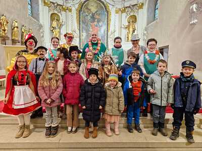 Am Faschingssonntag feierten wir eine Familienmesse mit Pfarrer i. R. Anton Schwinner. Die Gestaltung übernahmen dabei PAss Elvira Köckeis und PGRin Kathi Mahl. Dabei nutzten viele Kinder und auch Erwachsene die Gelegenheit und kamen geschminkt bzw. verkleidet zur Heiligen Messe.