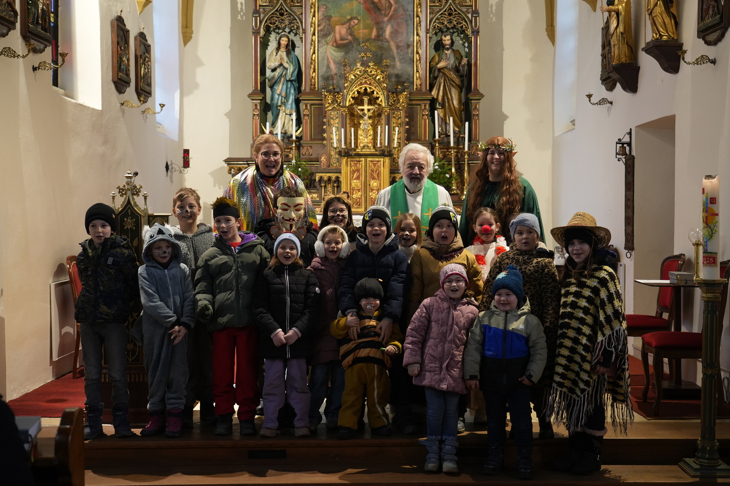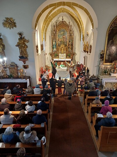 Am Faschingssonntag feierten wir eine Familienmesse mit Pfarrer i. R. Anton Schwinner. Die Gestaltung übernahmen dabei PAss Elvira Köckeis und PGRin Kathi Mahl. Dabei nutzten viele Kinder und auch Erwachsene die Gelegenheit und kamen geschminkt bzw. verkleidet zur Heiligen Messe.