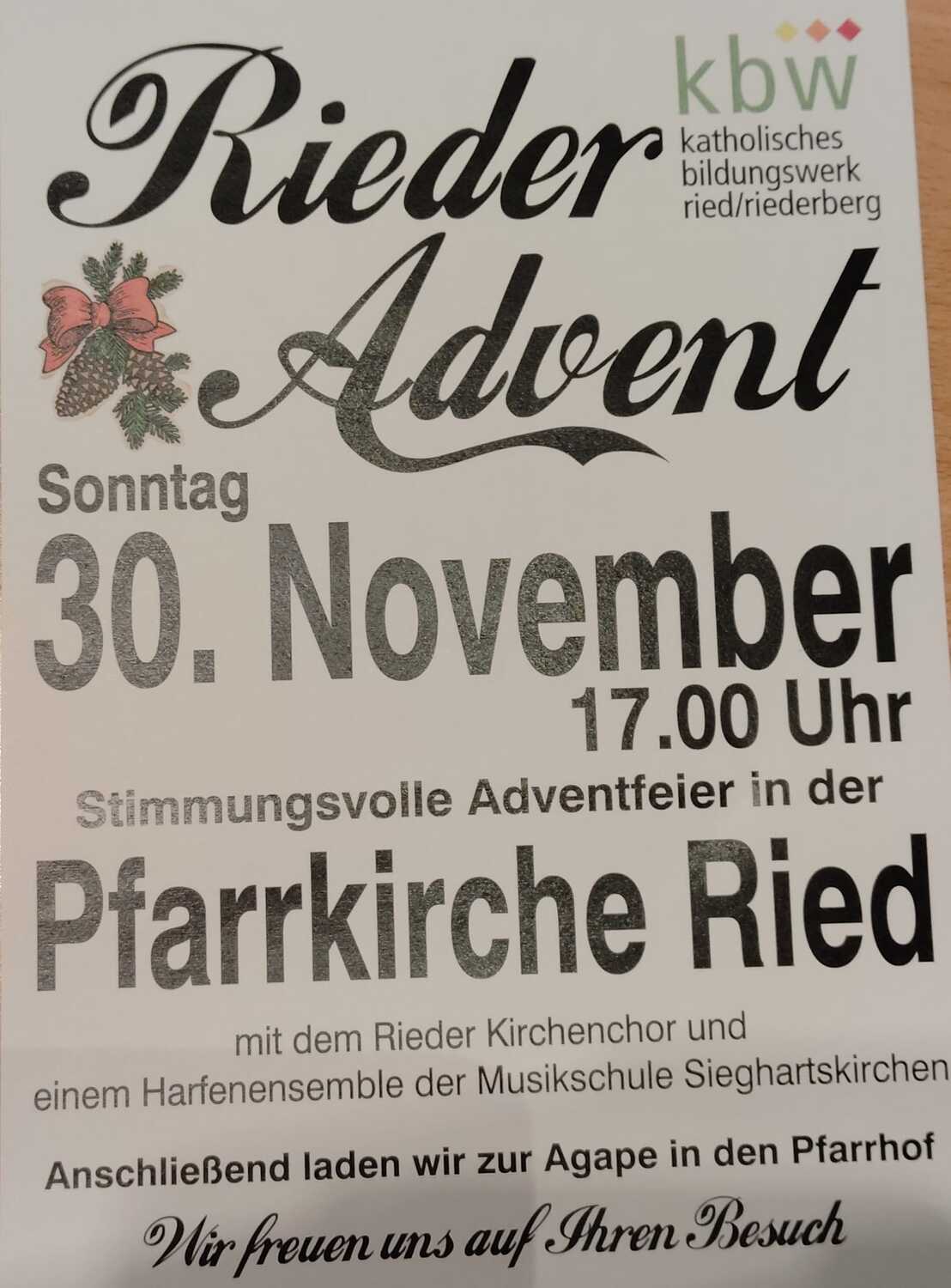 29.11.2025, 18:00 Uhr Sieghartskirchen: Vorabendmesse mit Adventkranzsegnung (Pfr. Gregor Slonka); anschließend Beichtgelegenheit Pfarrkirche Sieghartskirchen
